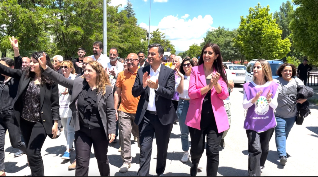 Dersim’in Akpazar (Peri) beldesinde CHP’nin 4 oy farkla kazandığı yerel seçimlerin tekrarı 2 Haziran tarihinde yapılacak. AKP’nin itirazı üzerine yenilenecek olan seçimler için DEM Parti Adayı Orhan Çelebi de çalışmalara başladı. Bugün Akpazar’da yapılan seçim çalışmalarına Van Büyükşehir Belediyesi Eşbaşkanı Abdullah Zeydan, DEM Parti Mardin Milletvekilleri Salihe Aydeniz ve Beritan Güneş Altın, Dersim Belediye Eş Başkanı Birsen Orhan ve kurum temsilcileri katıldı.