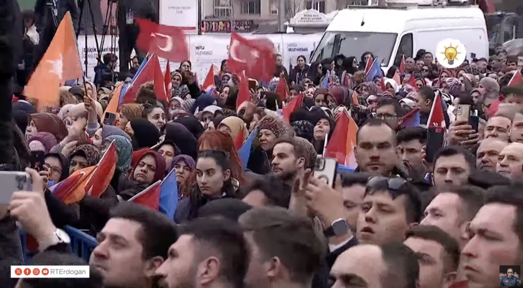 YouTube’dan AK Parti’nin Afyonkarahisar’daki mitingini izliyorum. (YouTube’dan izliyorum çünkü eleştirel bir gazeteci olduğum için akreditasyon yasağım var.)