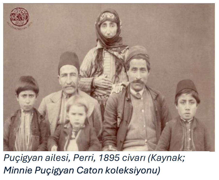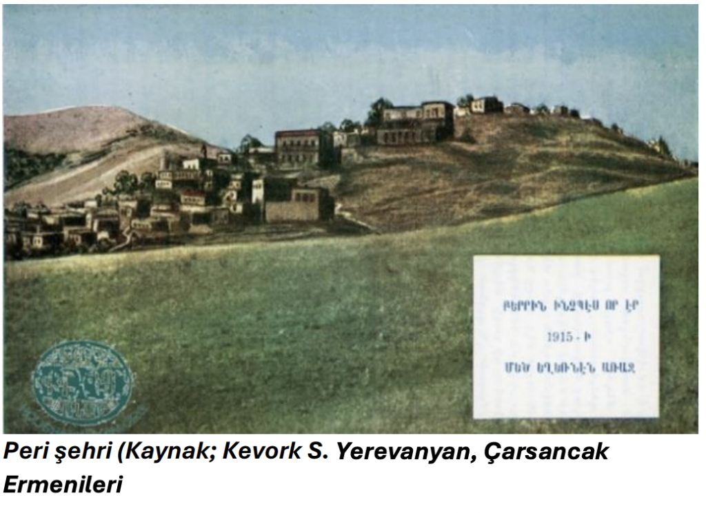“Ermeni Patrikhanesi tarafından Anadolu’da görevlendirilen üç Ermeni Rahibin 1844’te yayınlamış oldukları verilere göre, Peri’de 318, çevre köylerde ise 934 olmak üzere toplamda 1.252 Ermeni hanesi kaydedilmişti. Ermeni Patrikhanesi’nin Şubat 1913-Ağustos 1914 yılları arasındaki nüfus sayımına göre 1914’te Peri’de kırk üç yerleşim birimine dağılmış 7.940 Ermeni yaşamaktaydı (1.136) hanede. Bu yerleşim birimlerinde elli bir kilise, on beş Manastır ve yirmi üç okul (1.114 öğrenci) olduğu kaydedilmişti.
