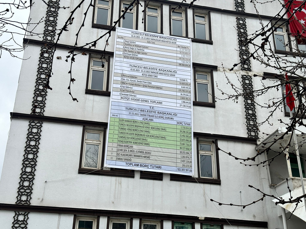 31 Mart 2024 seçimlerine kısa bir süre kalırken belediye yönetimi, eski belediye binasına gecikmeli bir pankart astı. Asılan pankartta borcun 183 milyon 303 bin lira olduğu görüldü.