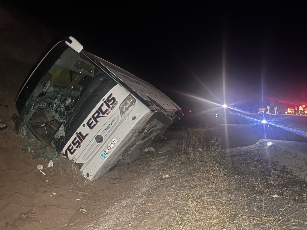 Sivas’ın İmranlı ilçesinde, yolcu otobüsünün yol kenarına devrildiği kazada 24 kişi yaralandı.